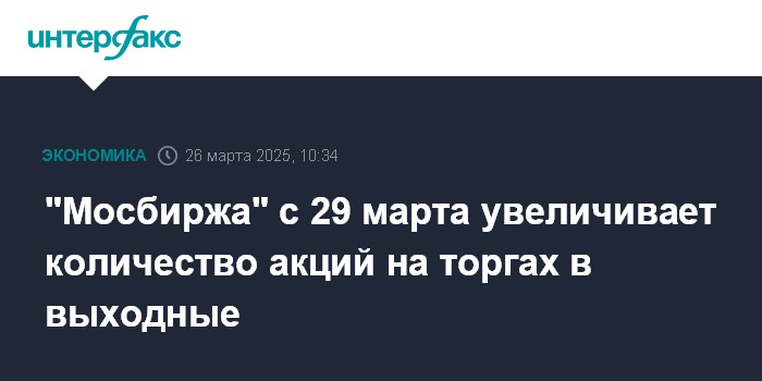 "Мосбиржа" с 29 марта увеличивает количество акций на торгах в выходные
