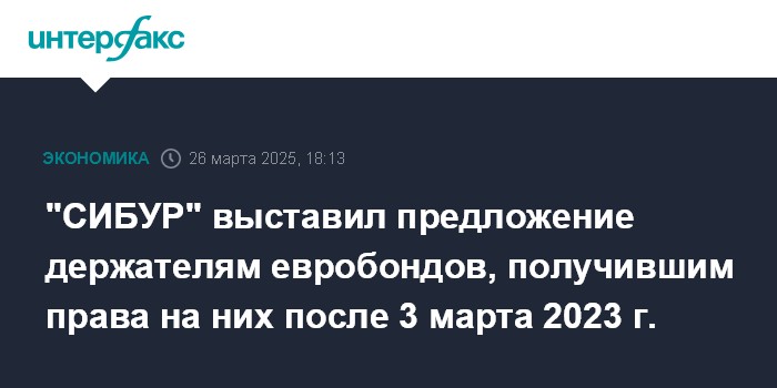 "СИБУР" выставил предложение держателям евробондов, получившим права на них после 3 марта 2023 г.