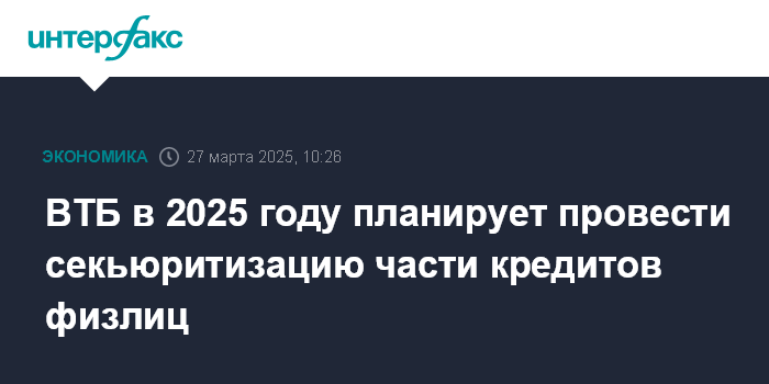 ВТБ в 2025 году планирует провести секьюритизацию части кредитов физлиц