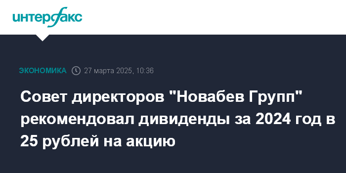Совет директоров "Новабев Групп" рекомендовал дивиденды за 2024 год в 25 рублей на акцию