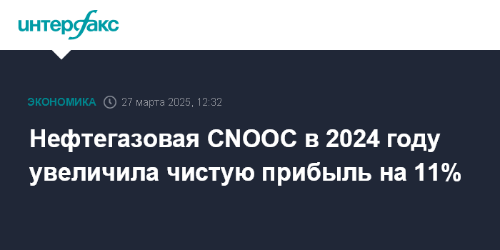 Нефтегазовая CNOOC в 2024 году увеличила чистую прибыль на 11%