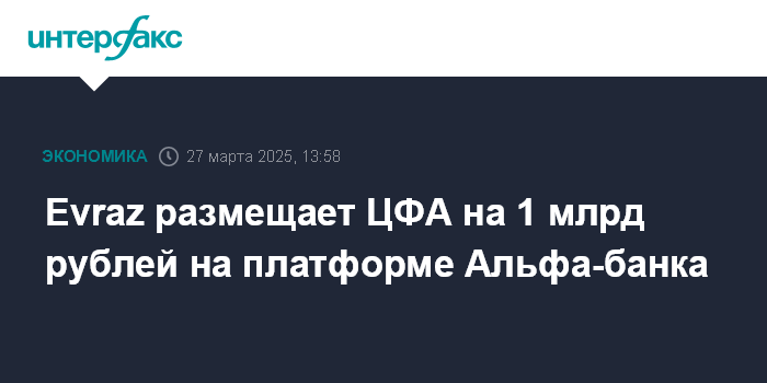 Evraz размещает ЦФА на 1 млрд рублей на платформе Альфа-банка