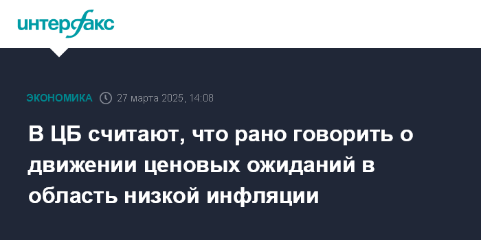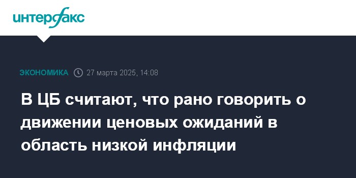 Москва. 27 марта. INTERFAX.RU - Устойчивое снижение инфляционных ожиданий является необходимым условием для смягчения денежно-кредитной политики, пока говорить о движении этого показателя в область, соответствующую низкой инфляции, преждевременно, заявил журналистам зампред Банка России Алексей Заботкин.