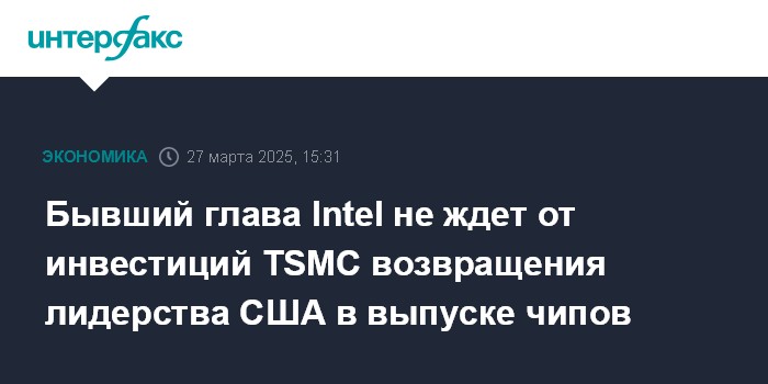 Москва. 27 марта. INTERFAX.RU - Масштабные инвестиции Taiwan Semiconductor Manufacturing Company (TSMC) в американскую экономику вряд ли помогут стране вернуть себе мировое лидерство в производстве микросхем, заявил Financial Times партнер венчурного фонда Playground Global и бывший глава Intel Corp. Пэт Гелсингер.