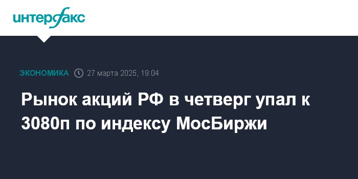 Рынок акций РФ в четверг упал к 3080п по индексу МосБиржи