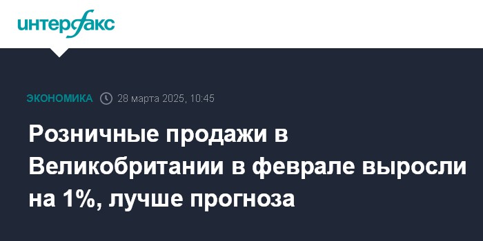 Москва. 28 марта. INTERFAX.RU - Розничные продажи в Великобритании в феврале увеличились на 1% относительно предыдущего месяца, говорится в отчете Национального статистического управления (ONS).