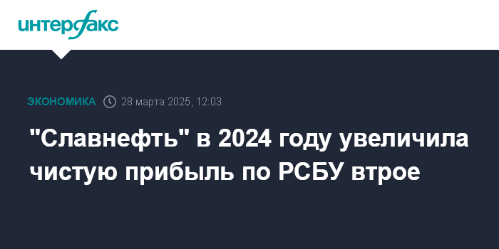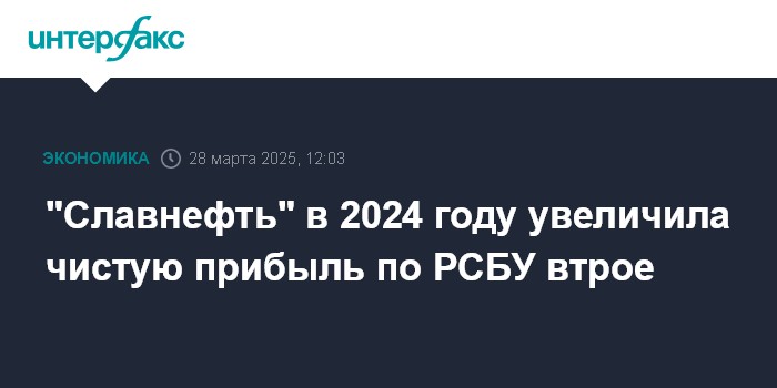 Москва. 28 марта. INTERFAX.RU - "Славнефть" (на паритетных началах принадлежит "Роснефти" и "Газпром нефти") в 2024 году получила 6,57 млрд рублей чистой прибыли по РСБУ, что в 2,9 раза превосходит результат 2023 года, сообщается в отчете компании.