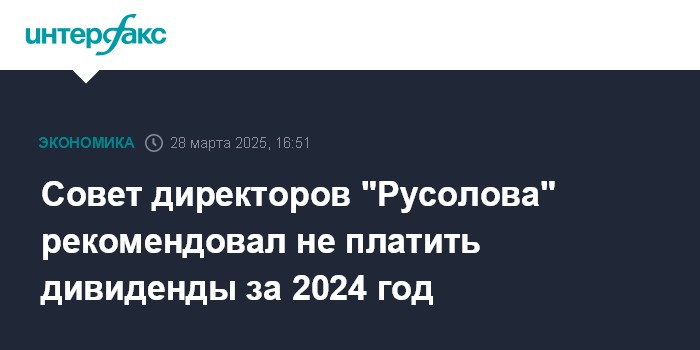 Совет директоров "Русолова" рекомендовал не платить дивиденды за 2024 год