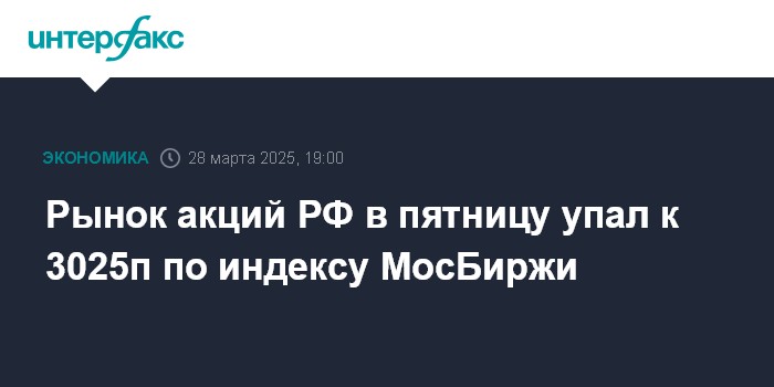 Рынок акций РФ в пятницу упал к 3025п по индексу МосБиржи