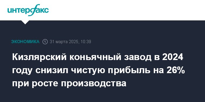 Кизлярский коньячный завод в 2024 году снизил чистую прибыль на 26% при росте производства