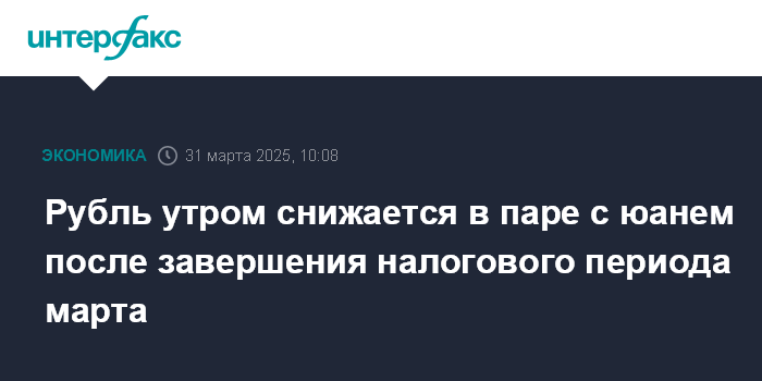 Рубль утром снижается в паре с юанем после завершения налогового периода марта
