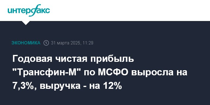 Годовая чистая прибыль "Трансфин-М" по МСФО выросла на 7,3%, выручка - на 12%