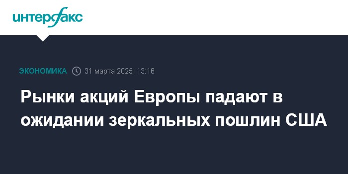 Рынки акций Европы падают в ожидании зеркальных пошлин США