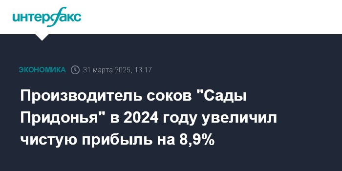Производитель соков "Сады Придонья" в 2024 году увеличил чистую прибыль на 8,9%