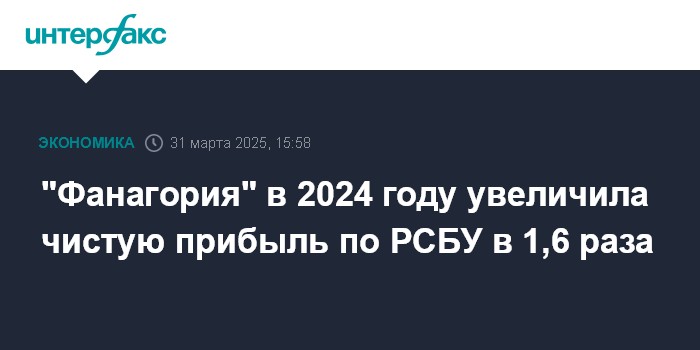 "Фанагория" в 2024 году увеличила чистую прибыль по РСБУ в 1,6 раза