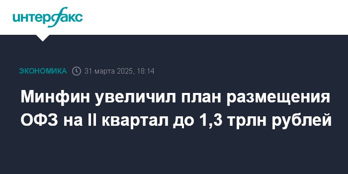 Минфин увеличил план размещения ОФЗ на II квартал до 1,3 трлн рублей