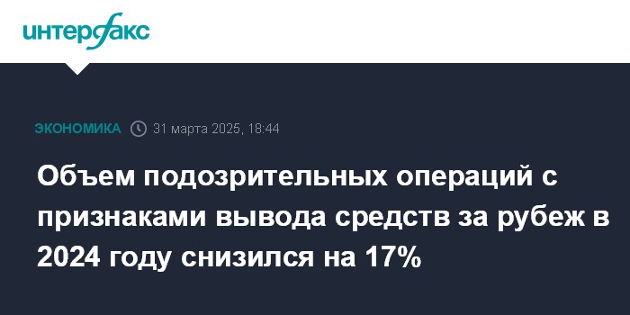 Объем подозрительных операций с признаками вывода средств за рубеж в 2024 году снизился на 17%