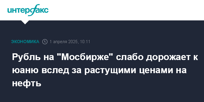 Москва. 1 апреля. INTERFAX.RU - Утром во вторник на "Московской бирже" рубль незначительно дорожает к юаню на фоне позитивной динамики цен на нефть.