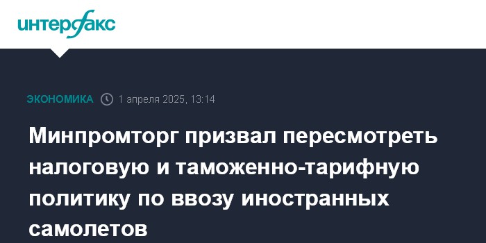 Минпромторг призвал пересмотреть налоговую и таможенно-тарифную политику по ввозу иностранных самолетов