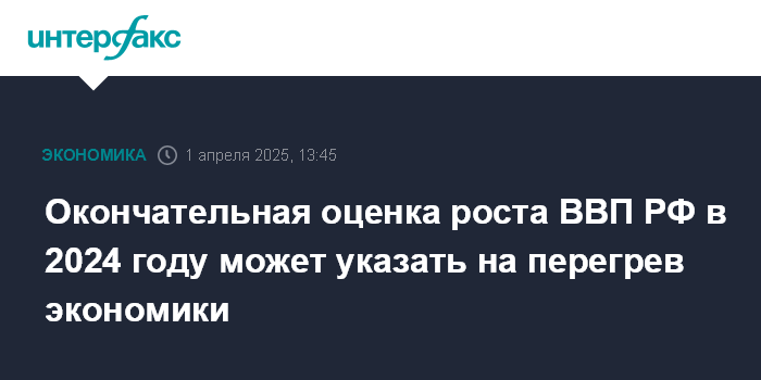 Окончательная оценка роста ВВП РФ в 2024 году может указать на перегрев экономики