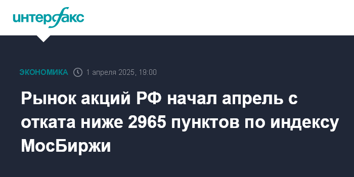 Рынок акций РФ начал апрель с отката ниже 2965 пунктов по индексу МосБиржи