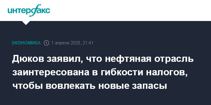 Дюков заявил, что нефтяная отрасль заинтересована в гибкости налогов, чтобы вовлекать новые запасы