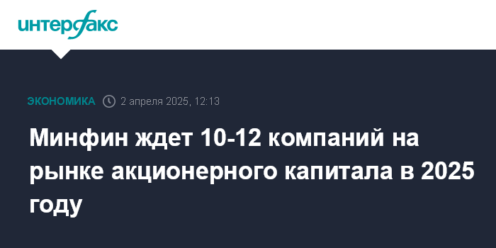 Минфин ждет 10-12 компаний на рынке акционерного капитала в 2025 году