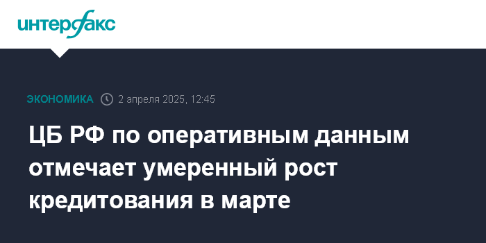 ЦБ РФ по оперативным данным отмечает умеренный рост кредитования в марте