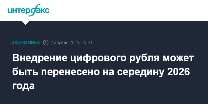 Москва. 2 апреля. INTERFAX.RU - Полномасштабное внедрение цифрового рубля может начаться в середине 2026 года, такой срок Банк России обсуждает с крупнейшими банками, рассказали Frank Media топ-менеджеры сразу четырех крупных игроков (как из числа банков, так и вендоров).