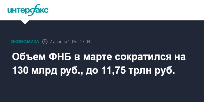 Объем ФНБ в марте сократился на 130 млрд руб., до 11,75 трлн руб.