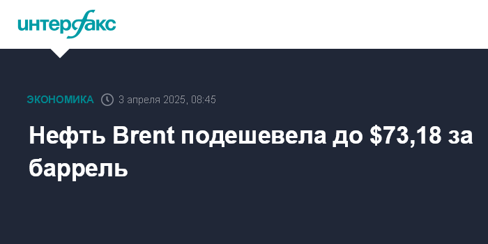 Нефть Brent подешевела до $73,18 за баррель