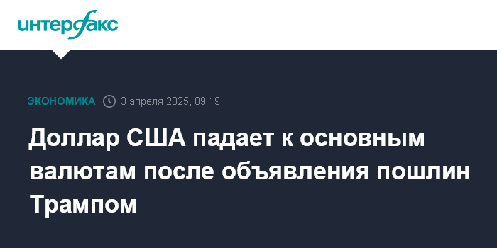 Москва. 3 апреля. INTERFAX.RU - Курс доллара США падает к основным валютам утром в среду, инвесторы оценивают объявленные президентом страны Дональдом Трампом масштабные пошлины.