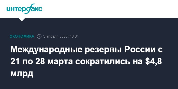 Международные резервы России с 21 по 28 марта сократились на $4,8 млрд
