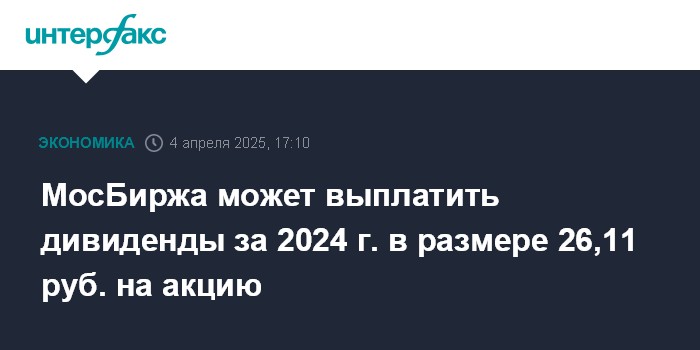 МосБиржа может выплатить дивиденды за 2024 г. в размере 26,11 руб. на акцию