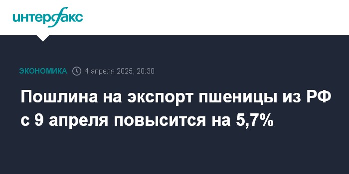 Пошлина на экспорт пшеницы из РФ с 9 апреля повысится на 5,7%