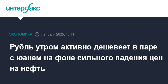 Москва. 7 апреля. INTERFAX.RU - Китайский юань растет на Московской бирже утром в понедельник, рубль активно дешевеет на фоне сильного падения цен на нефть.