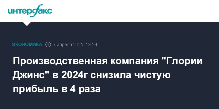 Производственная компания "Глории Джинс" в 2024г снизила чистую прибыль в 4 раза