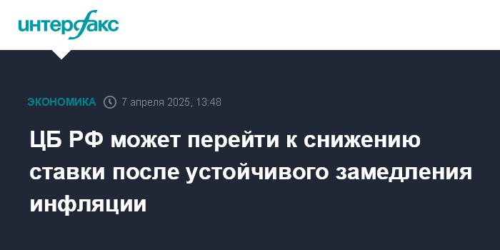 ЦБ РФ может перейти к снижению ставки после устойчивого замедления инфляции