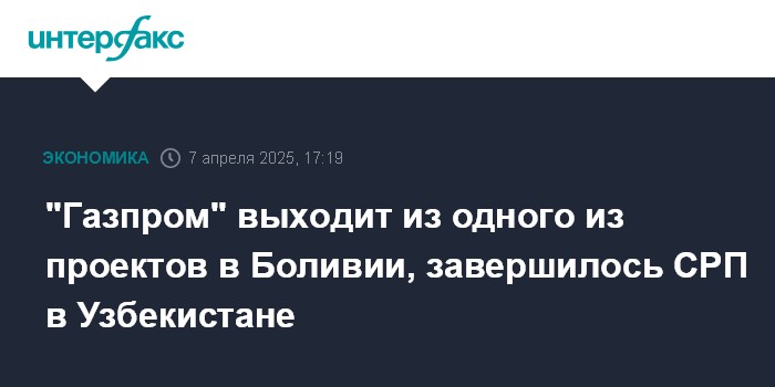 "Газпром" выходит из одного из проектов в Боливии, завершилось СРП в Узбекистане