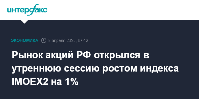 Рынок акций РФ открылся в утреннюю сессию ростом индекса IMOEX2 на 1%