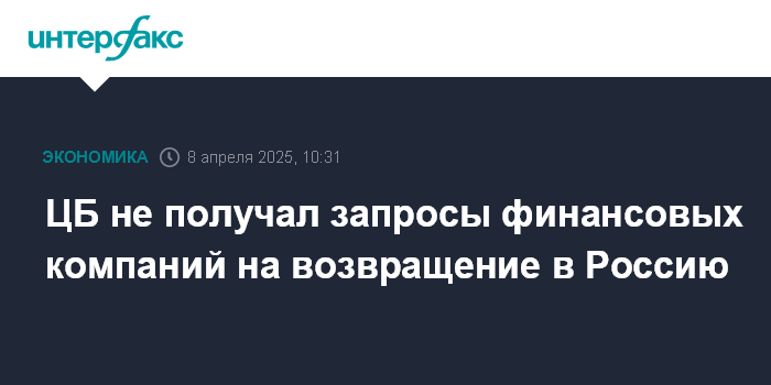 ЦБ не получал запросы финансовых компаний на возвращение в Россию