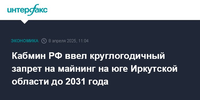 Изменения опубликованы 7 апреля на сайте для официального опубликования правовых актов. Согласно тексту документа, майнинг запрещен в районах и городах на юге Иркутской области с 7 апреля 2025 года по 15 марта 2031 года.