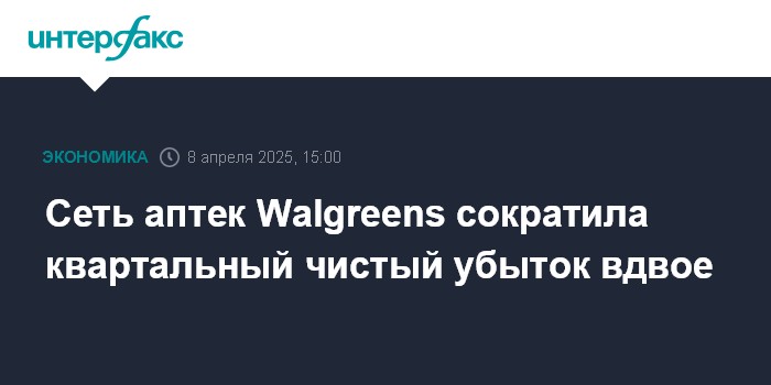 Москва. 8 апреля. INTERFAX.RU - Американская аптечная сеть Walgreens Boots Alliance, находящаяся в процессе поглощения инвестфондом, резко сократила чистый убыток и увеличила выручку во втором квартале 2025 финансового года, причем скорректированная прибыль и выручка превысили прогнозы рынка.