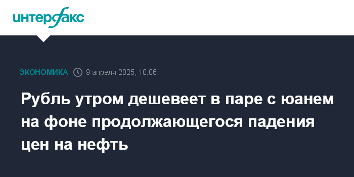 Москва. 9 апреля. INTERFAX.RU - Китайский юань растет на Московской бирже утром в среду, рубль дешевеет на фоне продолжающегося падения цен на нефть.