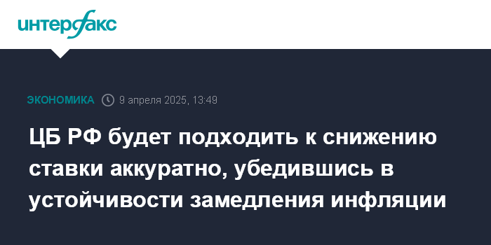 ЦБ РФ будет подходить к снижению ставки аккуратно, убедившись в устойчивости замедления инфляции