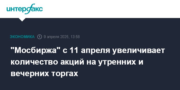 "Мосбиржа" с 11 апреля увеличивает количество акций на утренних и вечерних торгах