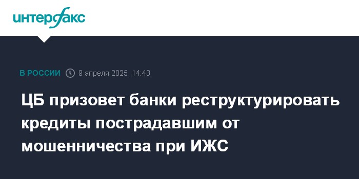 ЦБ призовет банки реструктурировать кредиты пострадавшим от мошенничества при ИЖС