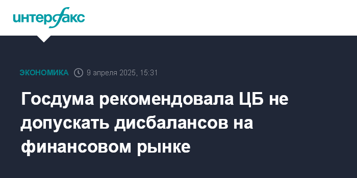 Госдума рекомендовала ЦБ не допускать дисбалансов на финансовом рынке