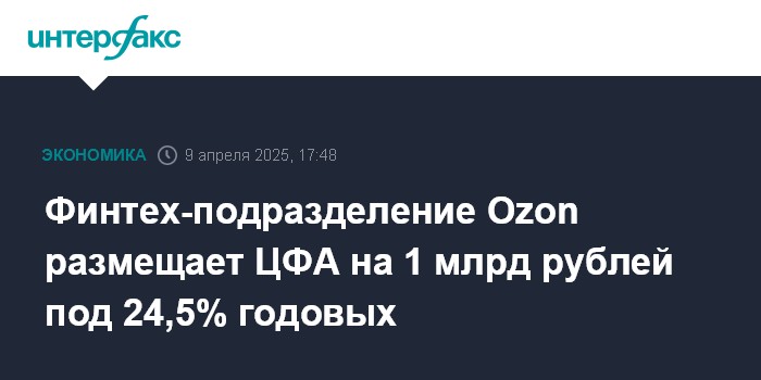 Финтех-подразделение Ozon размещает ЦФА на 1 млрд рублей под 24,5% годовых