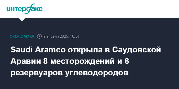 Saudi Aramco открыла в Саудовской Аравии 8 месторождений и 6 резервуаров углеводородов